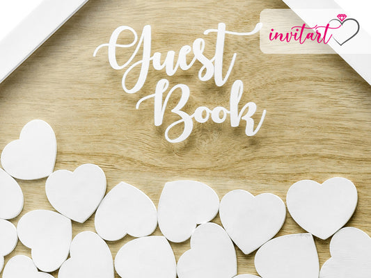 Ház alakú fa vendégkönyv Guest Book felirattal