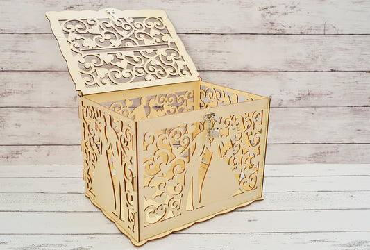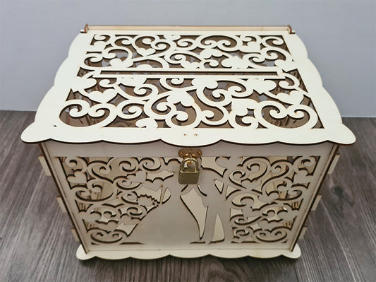 Lézervágott esküvői pénzgyűjtő / borítékgyűjtő doboz