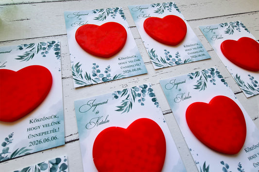 Szív alakú cukorkatartó köszönetajándék mentolos cukorkával