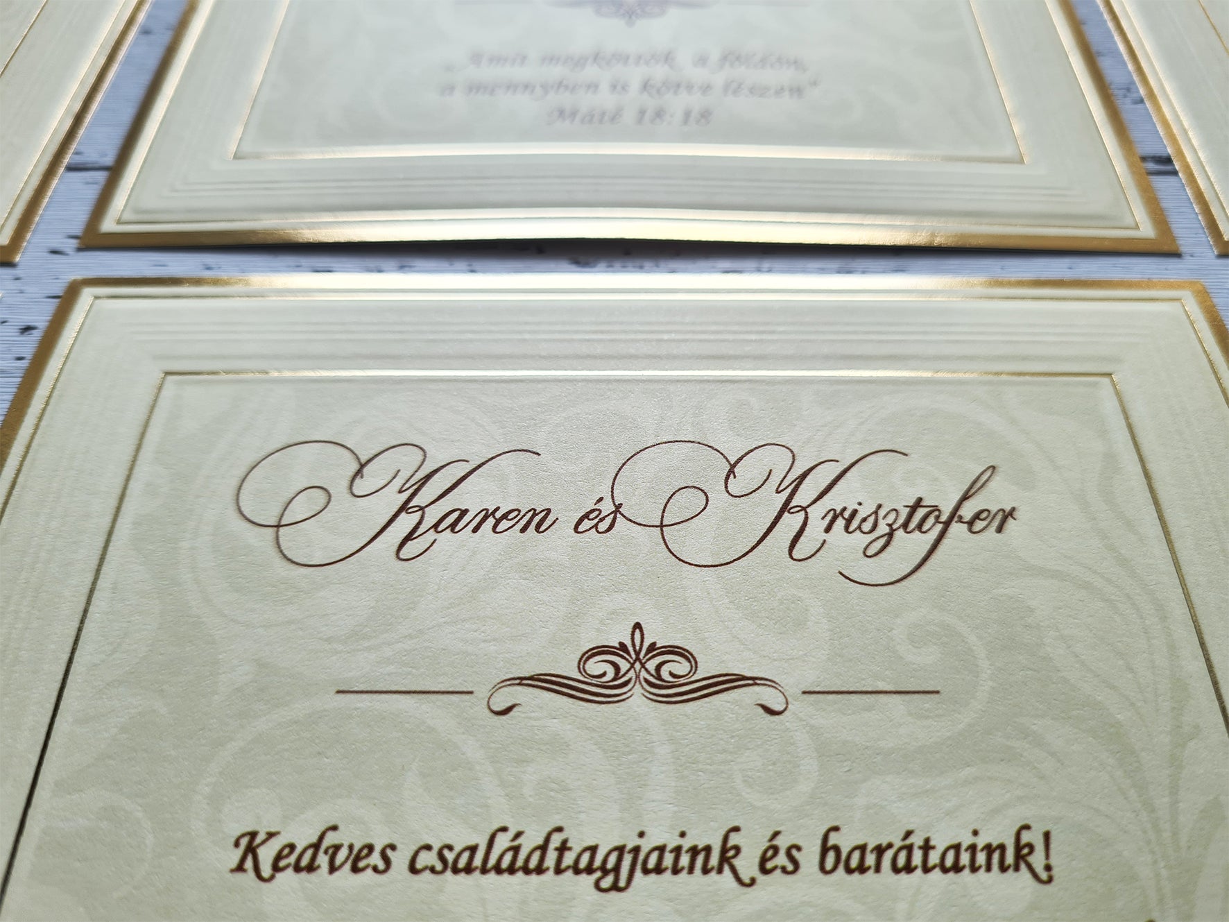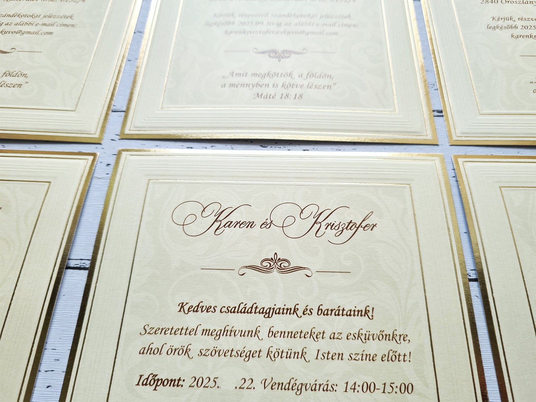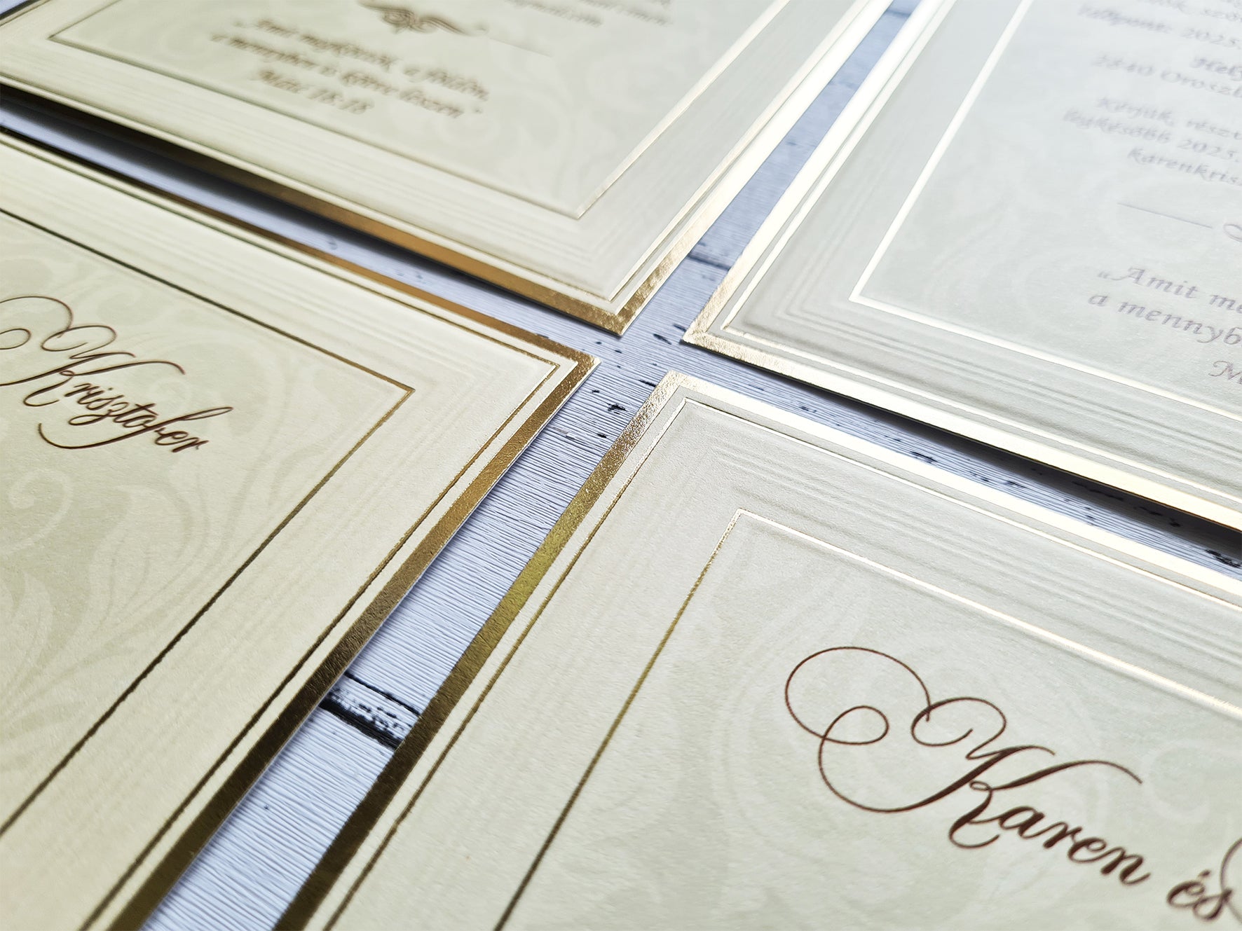 A meghívó krém színű, szélein aranyozott és dombornyomott.