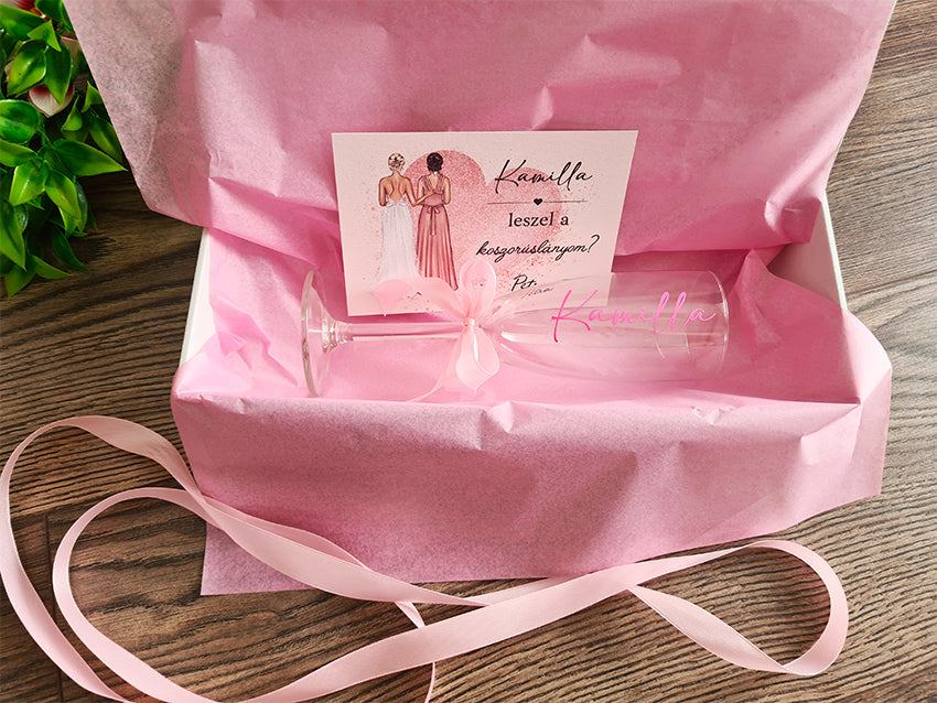 A dobozra is kérhetsz nevet, amelyet a pohárral megegyező, rose gold színben készítünk el.