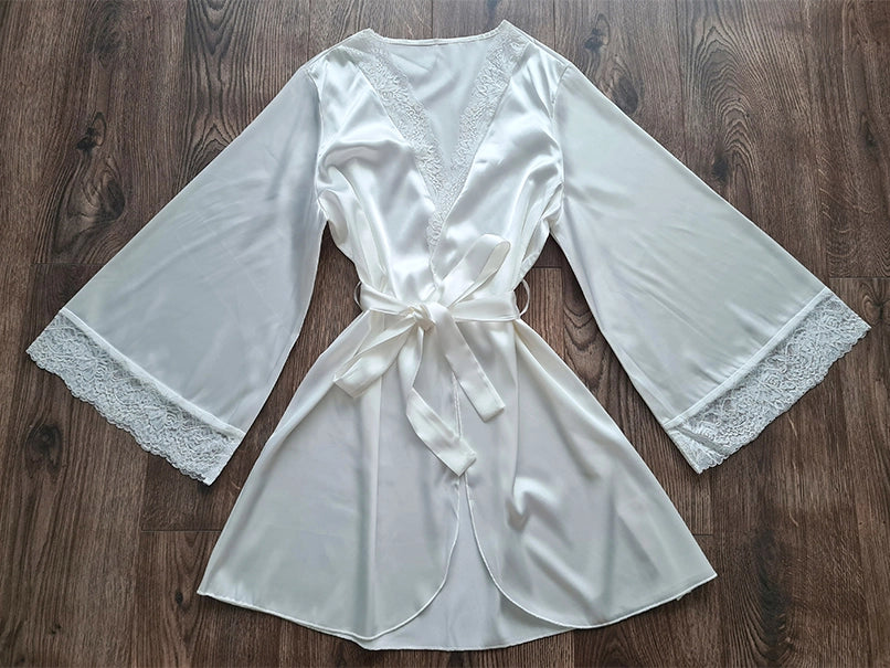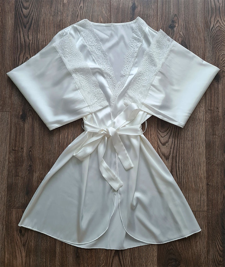 Menyasszonyi készülődő szatén köntös, fehér színben.