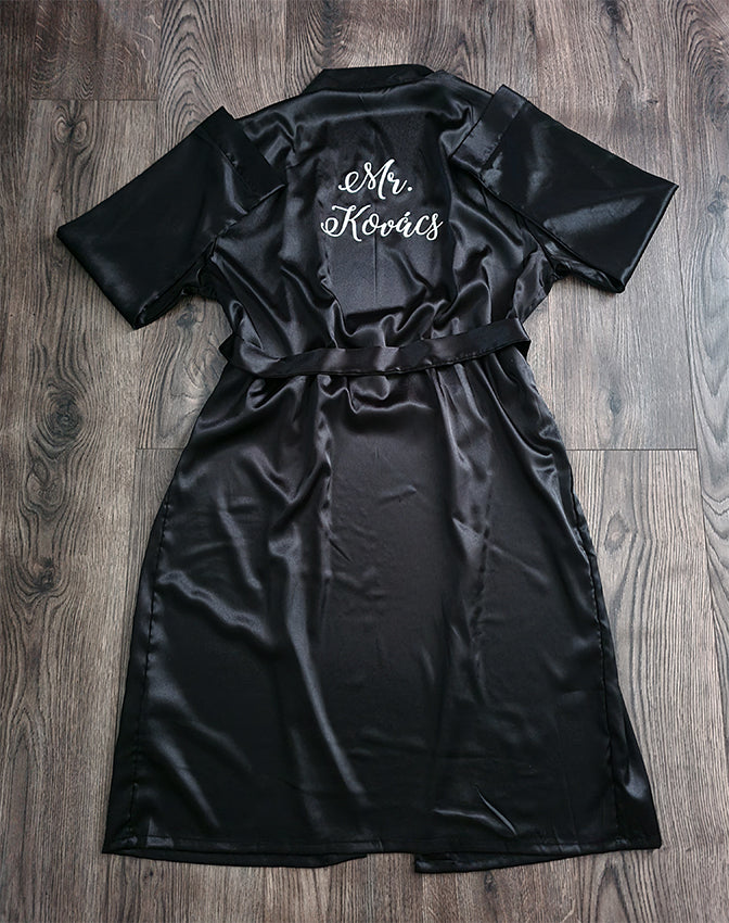 Vőlegény készülődő szatén köntös, fekete színben.
