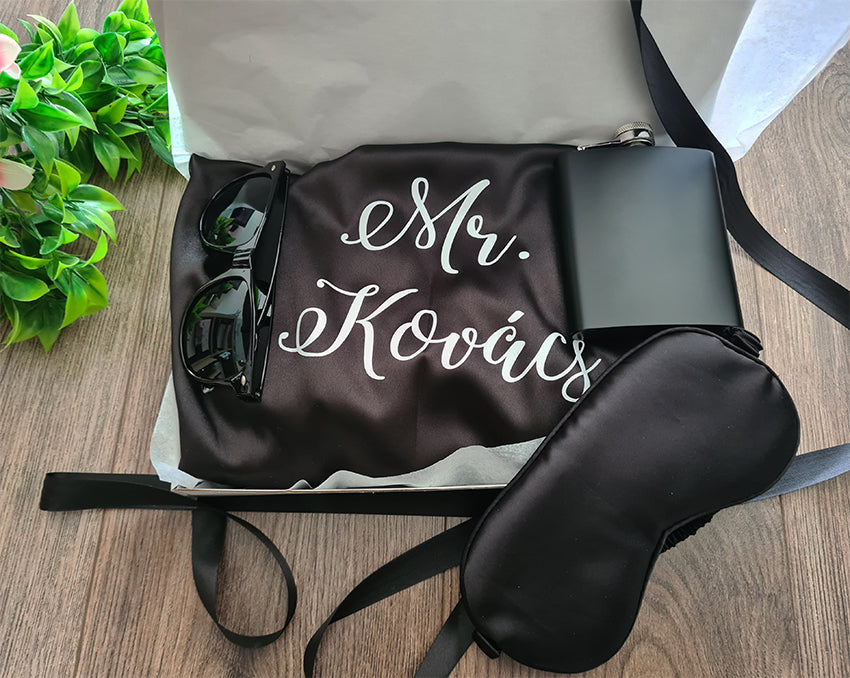 Vőlegény készülődő box, ami az alábbiakat tartalmazza: